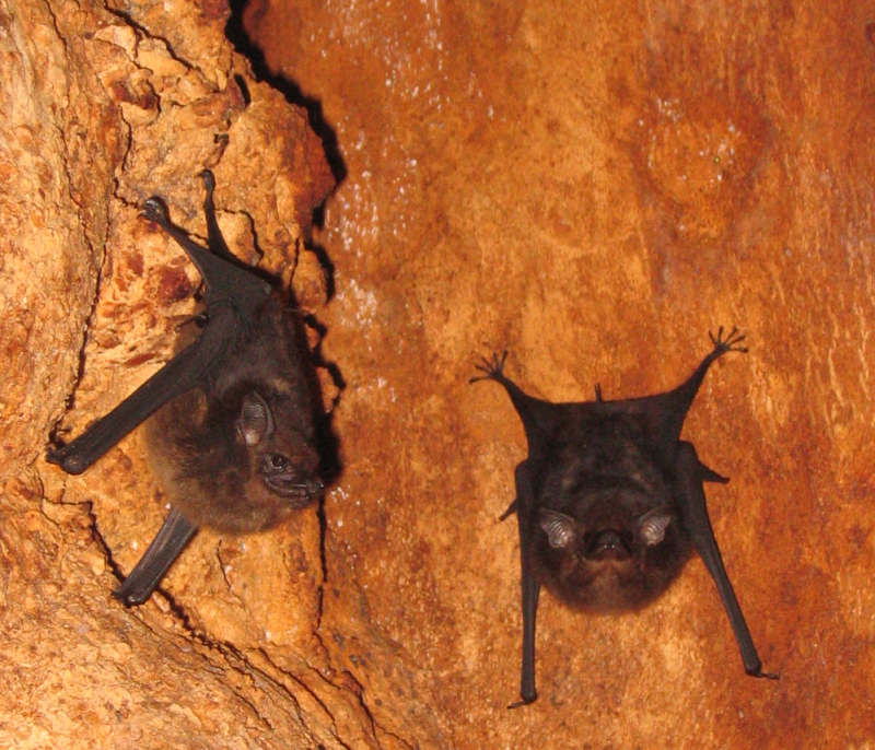 Famous for their night activity and sonar system, bats have a strong fascination on humans. Bats come in various sizes between 5-80 cm and weigh from 5g to 200g. During daytime bats can be found in their roosts (mostly caves, tree cavities of just a shady part of a tree). At night bats are out to eat: mostly they feed on insects which they catch directly with their mouths or use their wings as spoons. Some species are frugivorous and the “Common Vampire Bat” actually does feed on: blood! They push their sharp teeth into the necks of sleeping animals, remove a tiny piece of skin and lap the dripping blood. Because this makes very nutritive food they only need about half an ounce per day.
