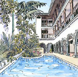 A central location in one of the city’s old parts (Barrio Amon) among many colonial houses. Within walking distance of museums, theatres and entertainment places for the evening. 24 rooms of 3 categories with private bathroom, TV. Calm, even somewhat "British" ambience. Bar, cafeteria, meeting room, shop, room service.